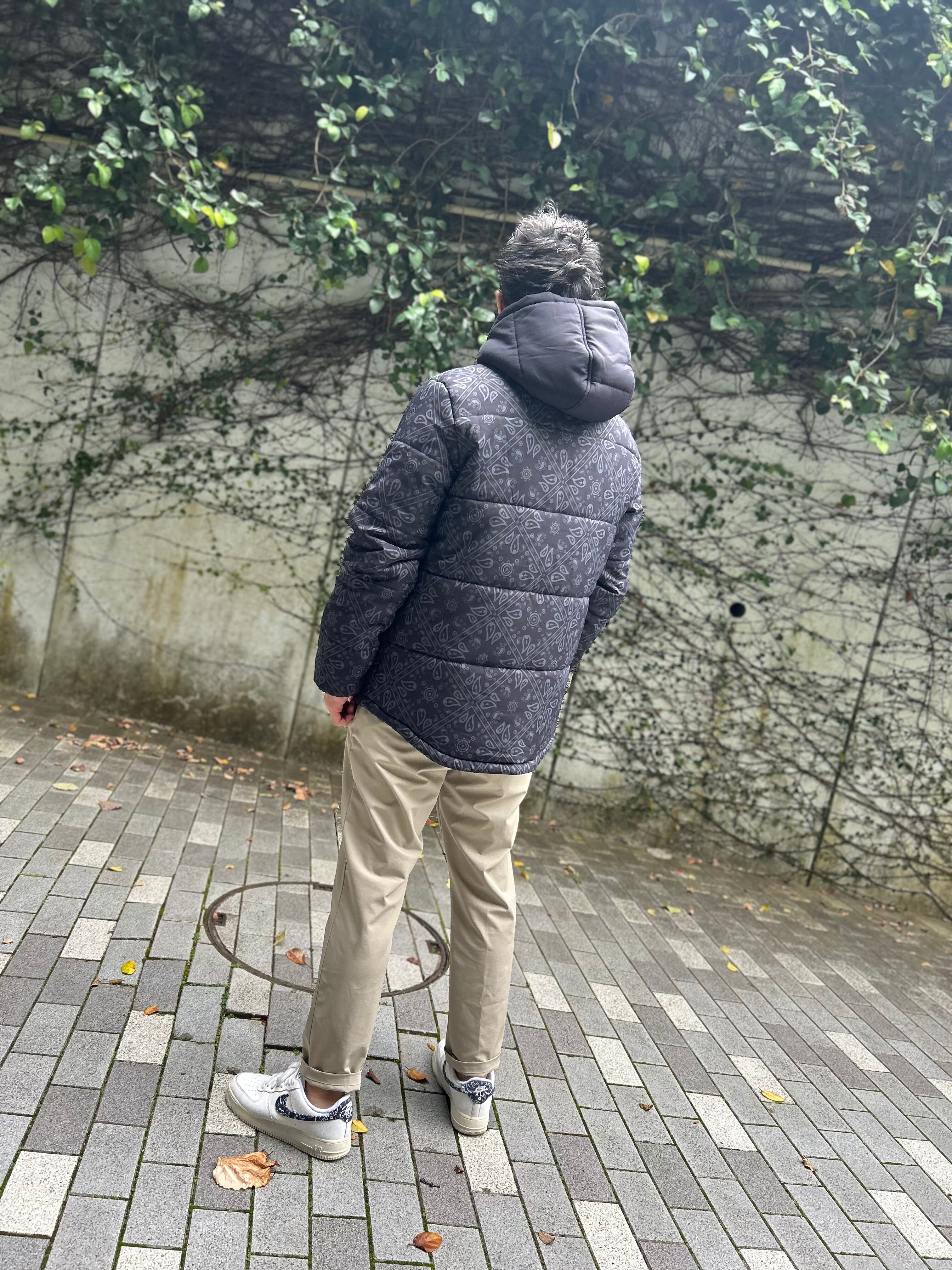 中綿入りの柔らかい素材を使用し、動きやすさも抜群。両サイドの大きなポケットは、実用性を重視しており、手を暖かく保つのに最適です。また、フードは取り外しできないデザインになっており、スタイルを崩さずに暖かさをキープします。