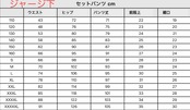 パンツはタイトタイプになります。上下で異なるサイズをオーダーしたい場合は、お問い合わせください。